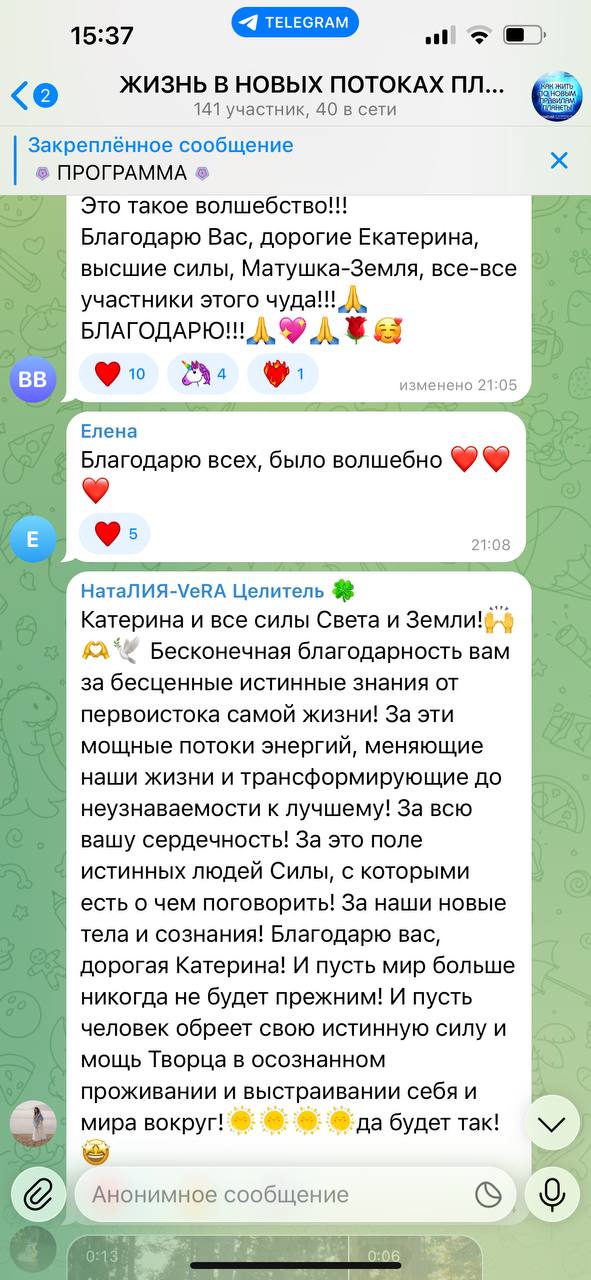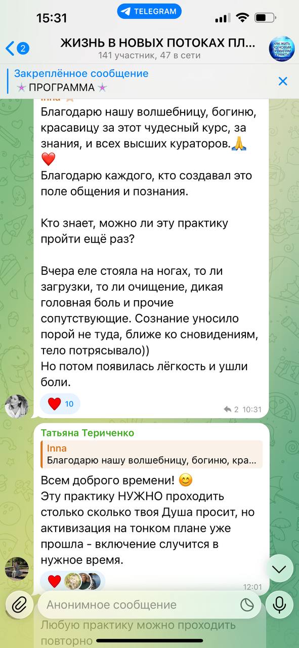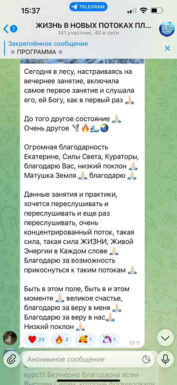 18 потоковых онлайн занятий, в диапазоне через 2 дня, что создает наиболее качественный поток видения и принятия проявляемых и активизируемых энергий жизни.