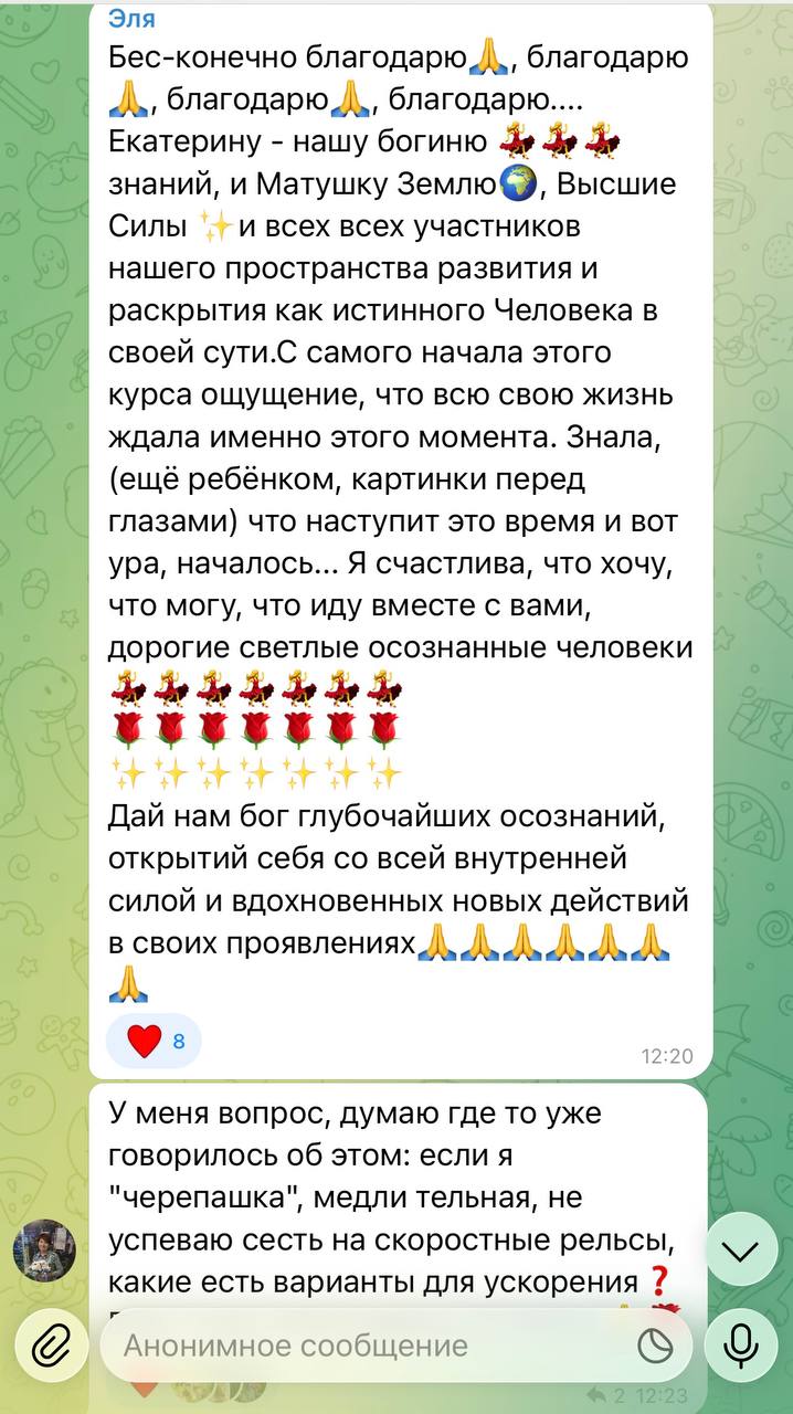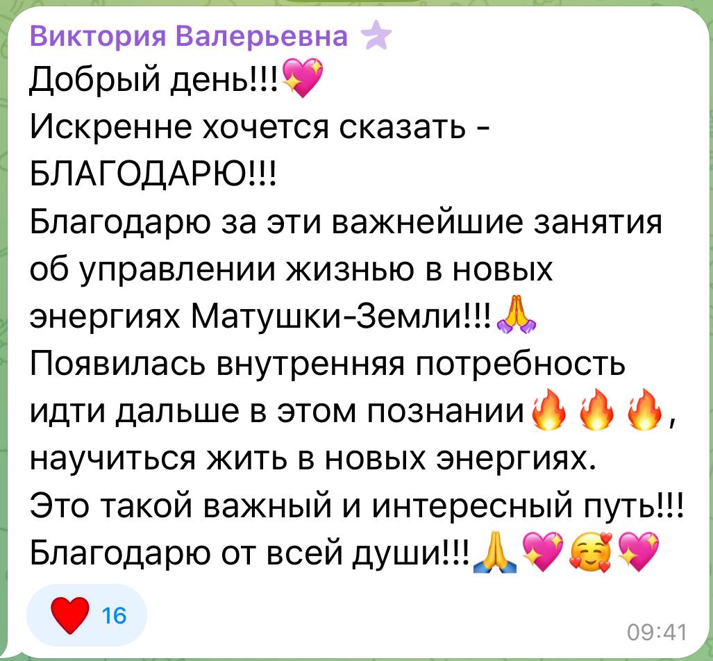 Приглашаем к познанию и гармоничному включению новых потоков планеты Земля в свою жизнь! Принимайте потоки осознанно и чувственно, не проходя многогодовой опыт событиями. Включайтесь в жизнь сразу в созидание!